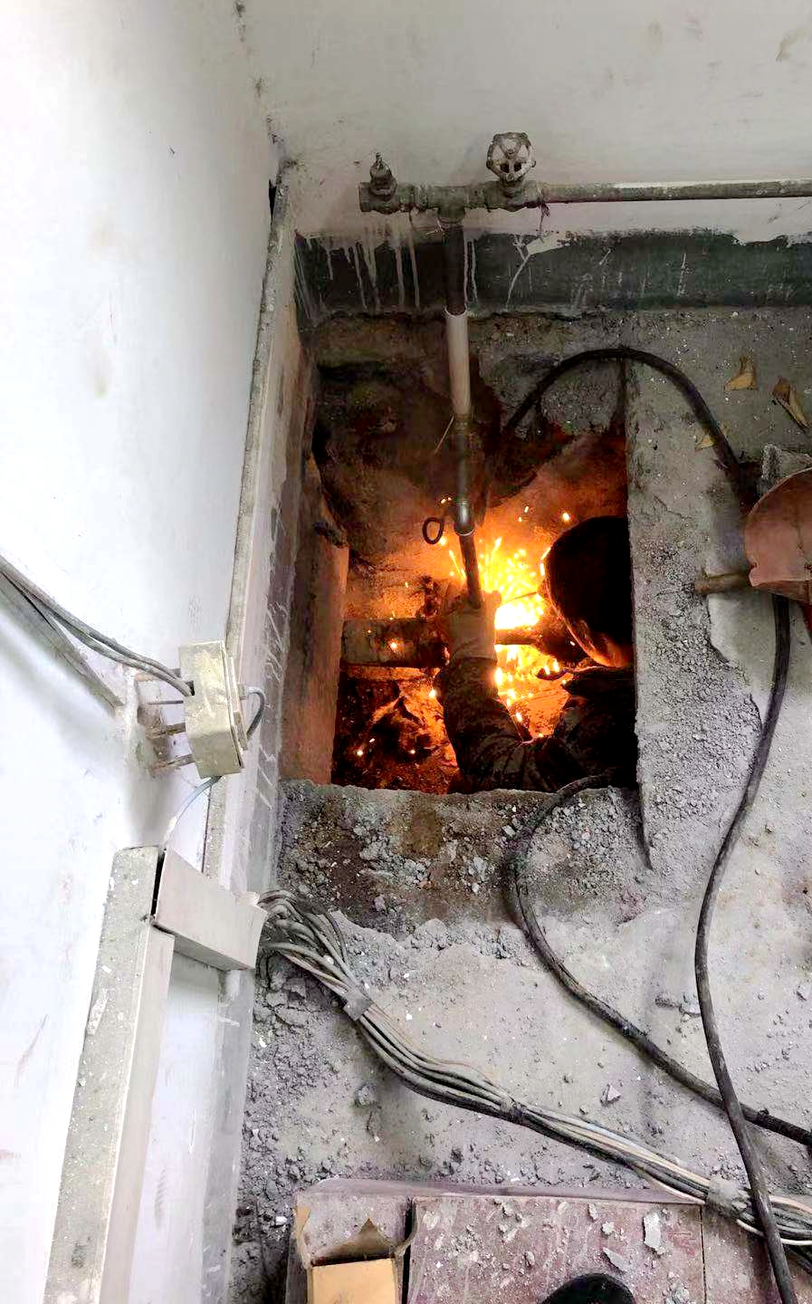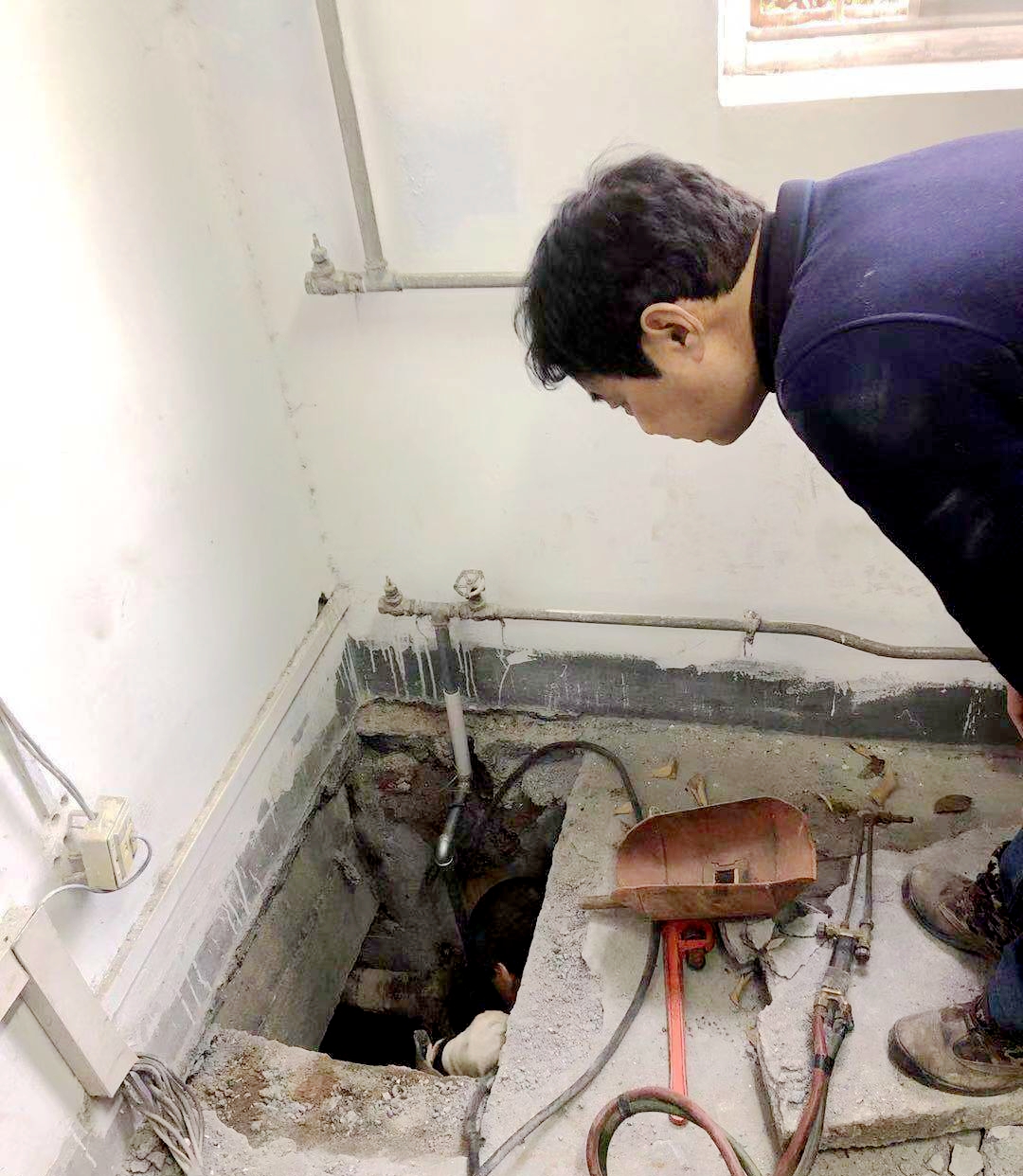 工作人员对管道进行维修
