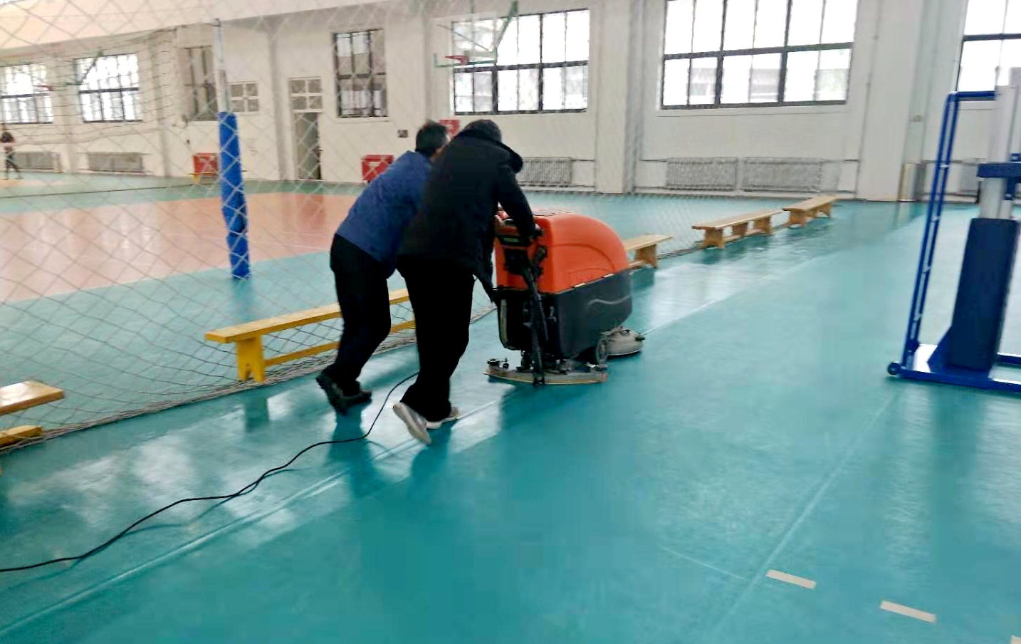 为迎接新学期到来,保证开学工作顺利进行,后勤管理人早安排、早准备,对各场馆、场地器材设施进行全面整备。