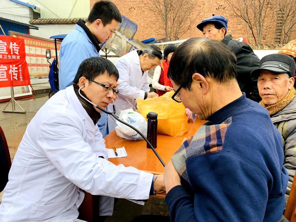 医疗专家组由内科主任王星、耳鼻喉科马彦红、妇科陈晓萍、骨伤科郭业富、外科陈鹏、预防保健科乔勃勃、内科护士长祝妮、外科护士长贺美利等11人组成,为村民进行疾病诊治、血压血糖检测、健康指导。