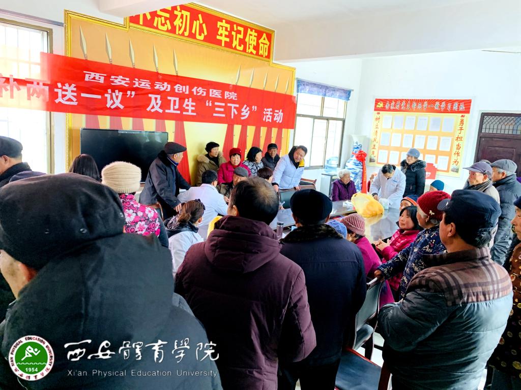 本网讯 近日,为响应“一补两送一议”政策号召和市卫健委“三下乡”活动要求,我院运动创伤医院院长何昌谋、办公室主任王晓峰等专家带领医疗队冒雨为对口扶贫点周至县辛庄村、余家村开展医疗帮扶活动。
