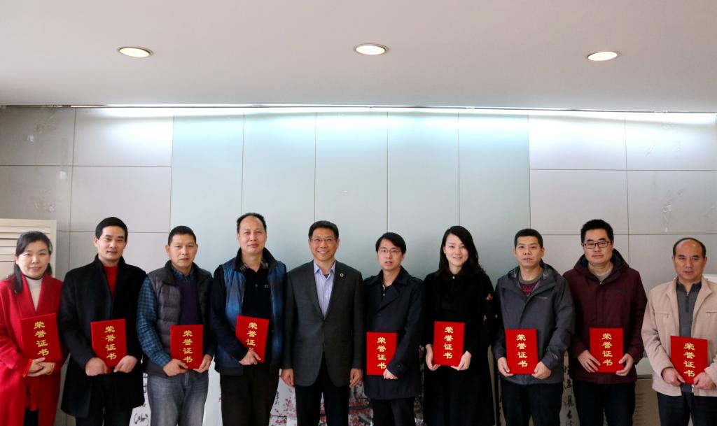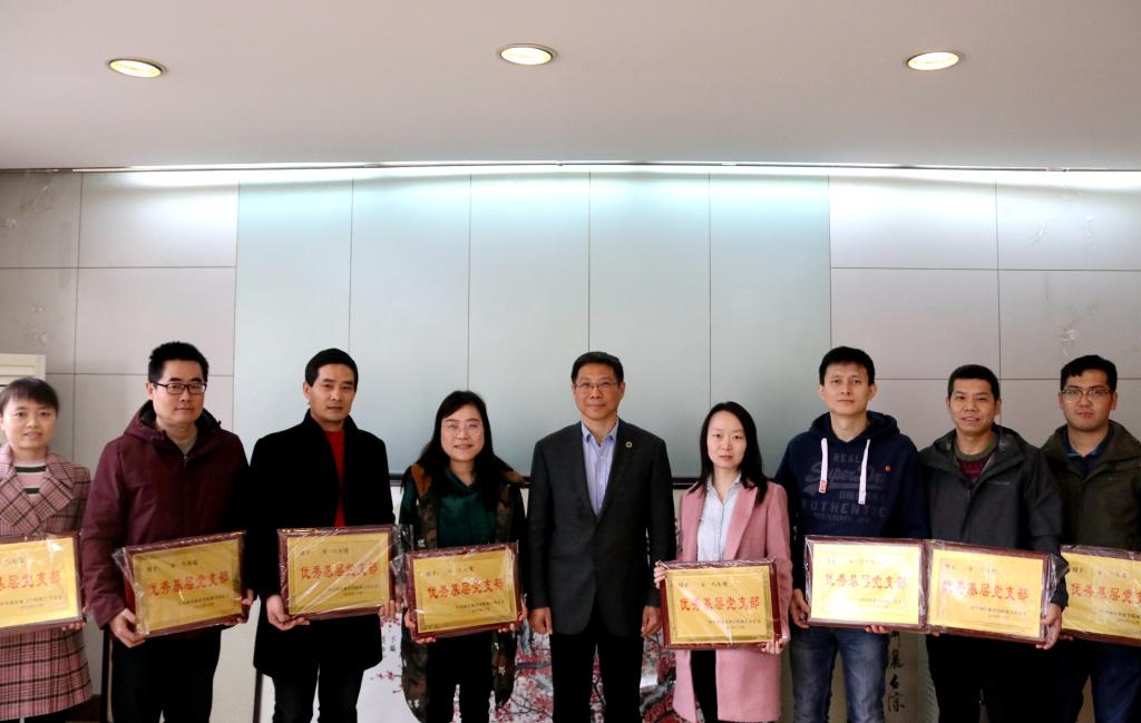 文立新为机关党总支2018年优秀基层党支部颁奖并合影