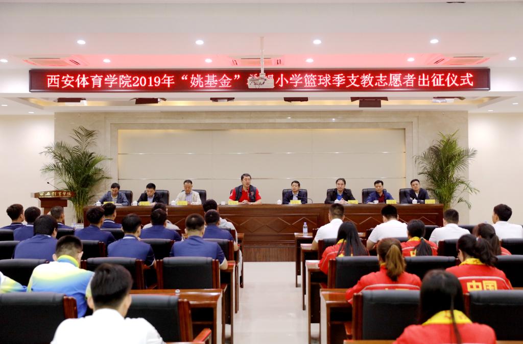 本网讯 5月14日上午,2019姚基金希望小学篮球季——万象城allwincity官网支教志愿者出征仪式在2号办公综合楼报告厅举行。中国篮协副主席、陕西省篮协主席王立彬,团省委希望办主任、省青少年发展基金会理事长邬钢,我院党委副书记刘子实等出席,学院相关职能部门、系部领导以及学生代表近百人参加。