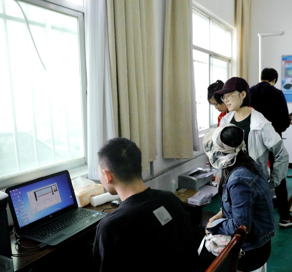 张明军副教授带领团队为当地干部群众开展健康体质测试,前来参与测试的人络绎不绝。刘军和张明军在现场为受测人员讲解测试报告。