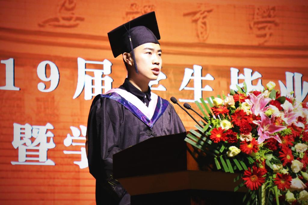 最后,2019届优秀毕业生代表、体育传媒系柴常潇带领全体毕业生进行庄严宣誓。