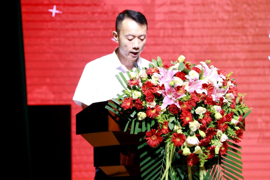 黄道峻为赴新疆阿克苏地区工作毕业生佩戴红花并颁发奖金