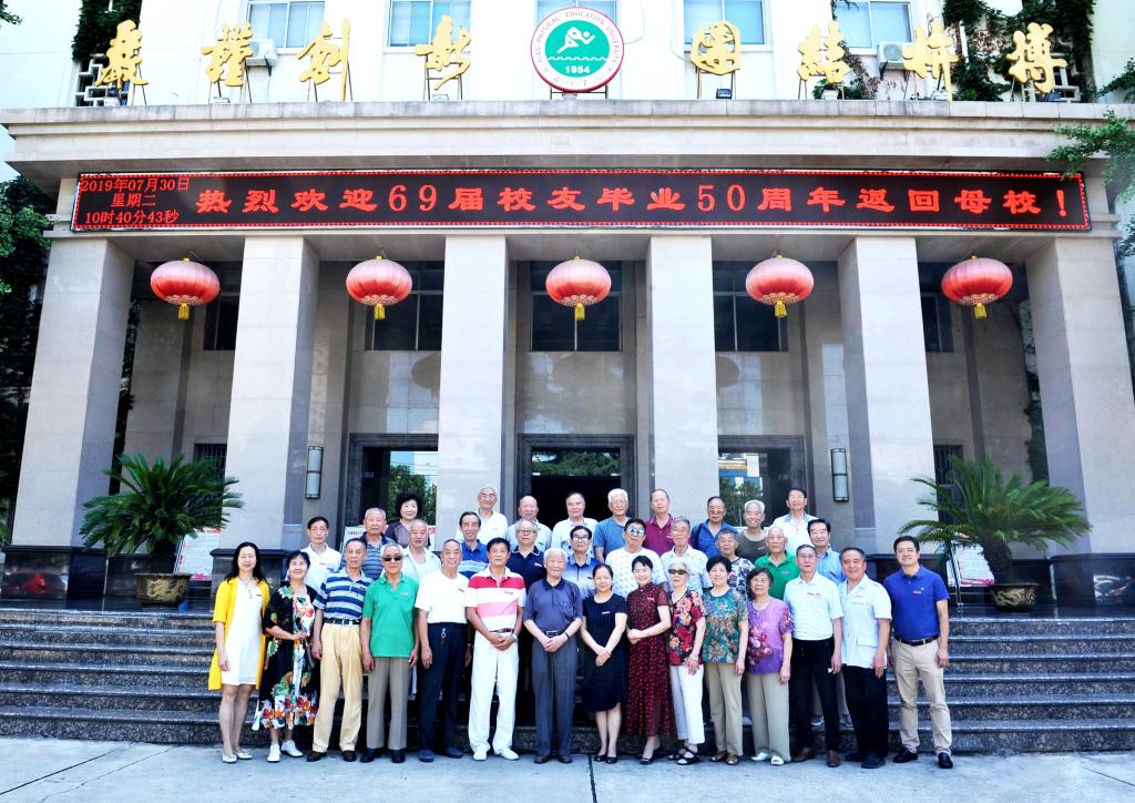 座谈会结束后,校友们在行政楼前合影留念,记录下这一难忘的时刻,随后共同参观了学校校史馆和部分教学场馆。忆往昔峥嵘岁月稠,看今朝鬓白夕阳红。五十年后的重逢,初心不改,热情依旧。别离之时,难舍难分,期待岁月静好,道声彼此珍重,祝愿学校的明天更加美好。