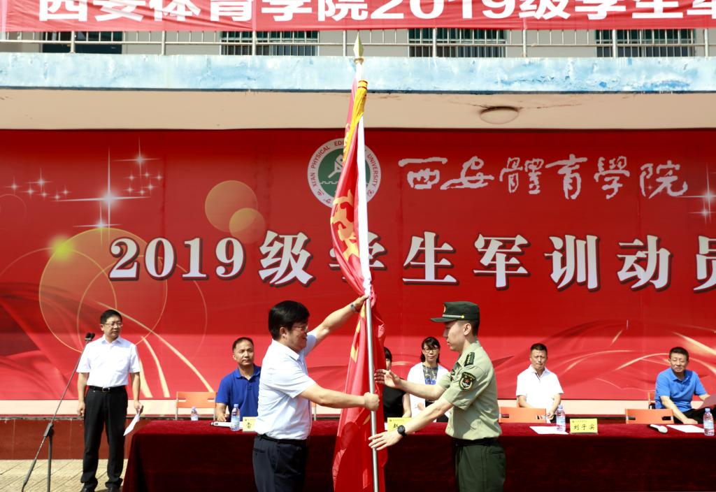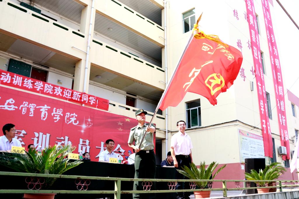 党委书记黄道峻、校长朱元利为军训团进行了授旗。
