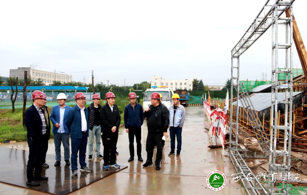 本网讯 9月17日上午,陕西省体育局副局长张王平、场馆处处长郭文、场馆建设专家郑建钢一行赴万象城鄠邑新校区检查十四运场馆建设进展情况,万象城副校长李富生以及基建处处长甘泽军、手球馆施工单位、监理单位负责人等陪同。