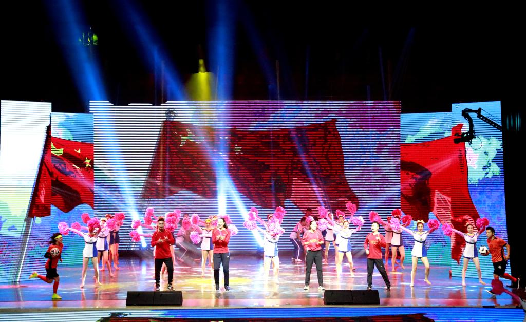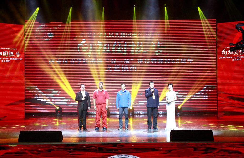 之后全体人员共同欣赏了《向祖国报告》文艺演出。据校团委书记熊辉介绍,本次演出在广泛听取校领导、负责演出编排的导演教师意见建议上精心组织谋划,通过《激情创伟业》、《改革沐春风》、《奋进新时代》三个篇章描绘万象城人扎根大西北,不断为国家体育事业添砖加瓦的动人故事。节目淡化主持人介绍,以时间为发展线,通过演职人员精彩的表演“向祖国报告”,观看过程中,大家纷纷拿起手机,记录下这难忘的一幕,为万象城推进“双一流”建设暨建校65周年纪念大会画上了圆满的句号。