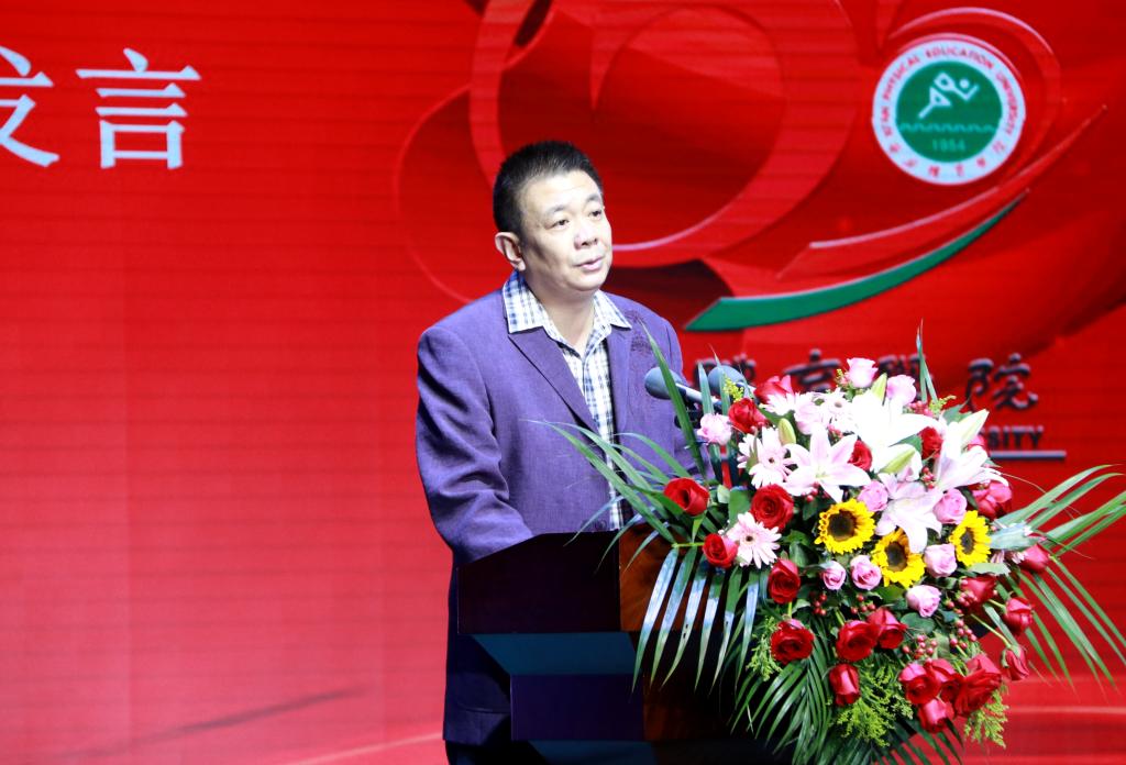 校友代表、新疆维吾尔自治区体育局党组书记聂春致辞。他说,带着“绿叶对根”的思念,参加母校65周年校庆,心情格外激动,多年来,不管自己如何变化,对母校的关注始终不变,对母校的情怀始终如一,对母校的感恩始终铭记。我们会始终牢记万象城校训,弘扬万象城精神,不忘初心,牢记使命,把万象城的核心价值理念不断发扬光大,凝聚力量投入体育强国建设的伟大实践,为实现“两个一百年”奋斗目标做出应有贡献,以优异成绩庆祝中华人民共和国成立70周年。