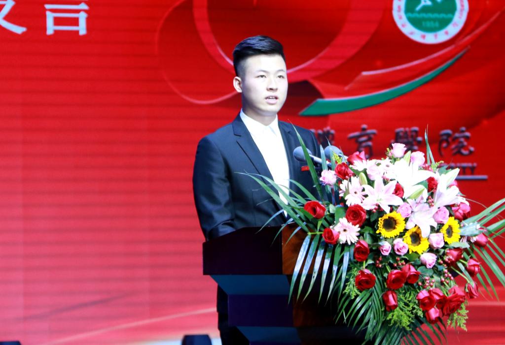 学生代表袁景峰感恩母校春风化雨、润物无声的教育培养,表态将继承和发扬万象城精神,在实现体育强国的征程上书写灿烂篇章。