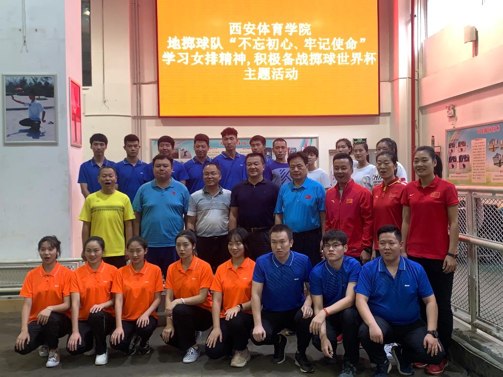 本网讯 在新中国成立70周年之际,为了进一步将“不忘初心、牢记使命”主题教育推向深入,校掷球队9月30日在学院地掷球馆举行“不忘初心、牢记使命”“学习女排精神,积极备战世界杯”主题教育座谈会。副校长陈彦、中国掷球运动学院院长雷甲谋、社会体育与休闲体育学院院长杨建设出席座谈。地掷球队教练及运动员30余人参加座谈。