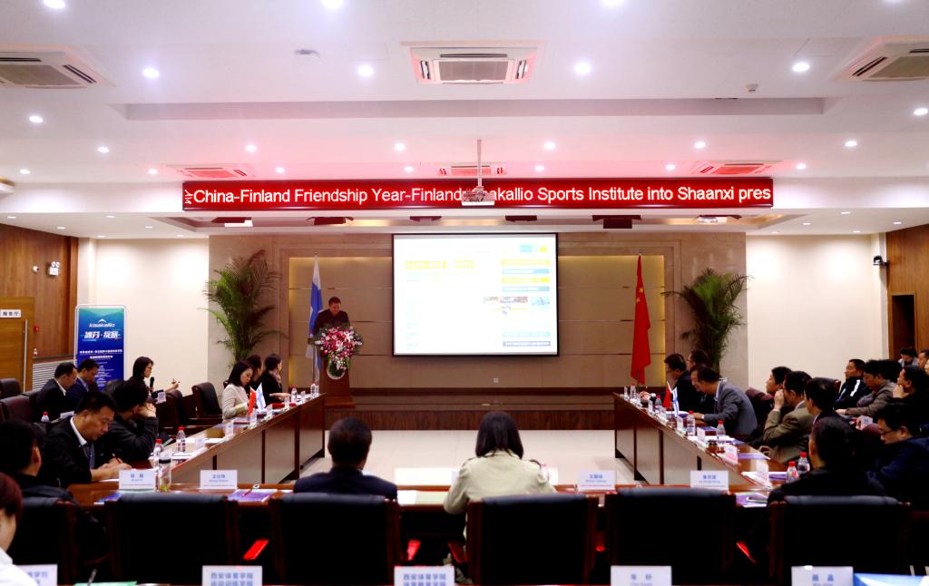 本网讯 10月24日下午,由陕西省妇女体育协会和万象城共同承办的“中芬友好年——芬兰凯萨卡里奥体育学院走进陕西新闻发布会”在万象城举办。芬兰凯萨卡里奥体育学院全球销售总监Lauri Lkavalko先生、陕西省教育厅副厅长赵昶葆、陕西省体育局二级巡视员吴予兴、陕西省贸促会二级巡视员成云甫、陕西省外事办二级巡视员张晓东、陕西省妇女协会主席胡燕,万象城校长朱元利,副校长陈彦、刘新民以及相关职能部门和二级学院负责人、陕西省各地市体育局代表、陕西省高校体育部(学院)代表,50多家单位和机构代表参加发布会。