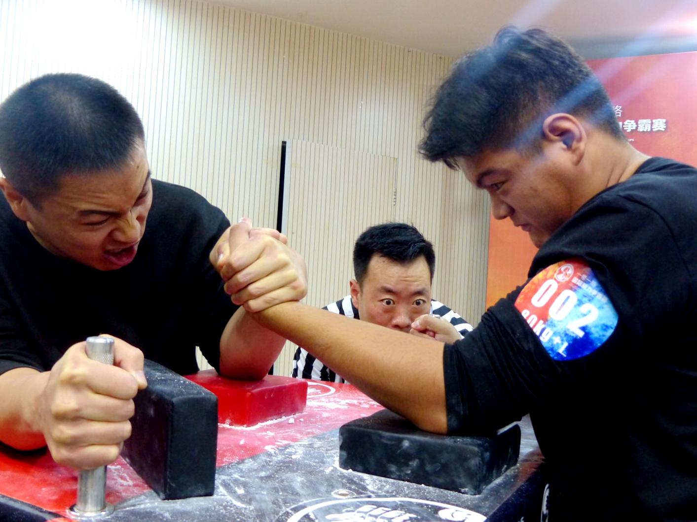 比赛在啦啦操和街舞表演之后迎来高潮,二百多名参赛选手全力以赴,为在场的嘉宾和观众带来了一场腕力体育运动视觉与激情盛宴。经过激烈比拼,共决出了7个级(组)别的名次,分别为男子右手70kg级、80kg级、90kg级、90公斤以上级;男子左手85kg以下级、男子右手85kg以上级以及女子无差别组,最终各个级别决出前八名,其中各级别前三名成功晋级到11月份的2019一带一路国际腕力争霸赛总决赛。