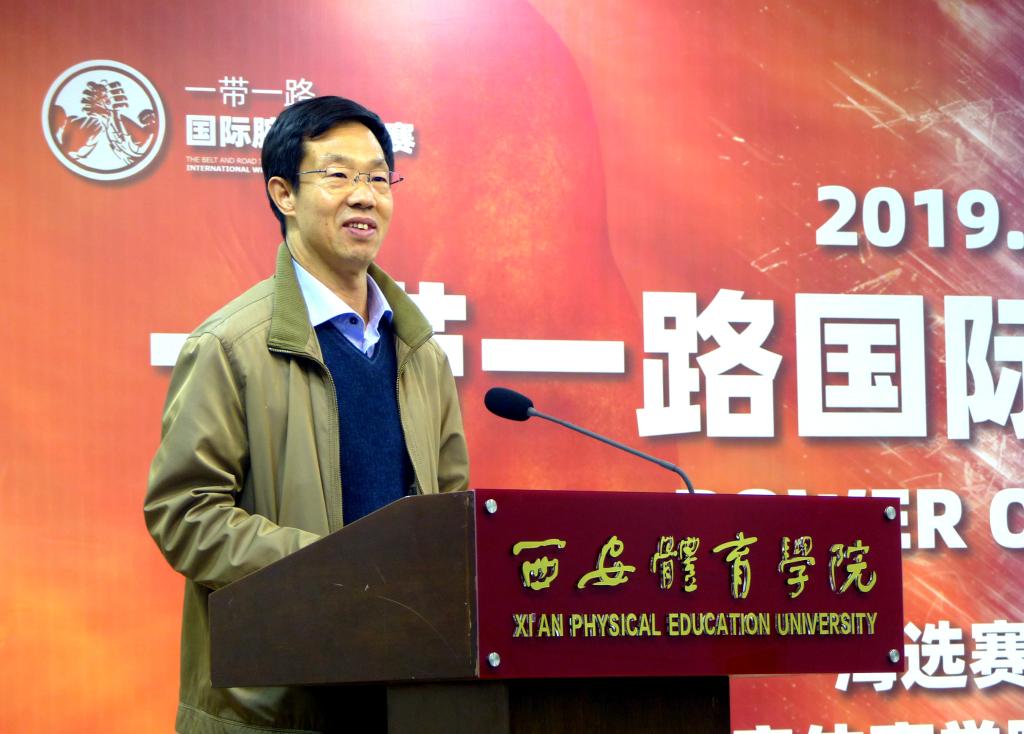 刘新民发表致辞,他对陕西省体育局给予本次比赛的大力支持表示感谢,并指出,国家提出“一带一路”倡议,承载着构建人类命运共同体的伟大梦想,教育领域则肩负推进共建“一带一路”教育行动、构建“一带一路”教育命运共同体的特殊使命。本次比赛的举办,即是为“一带一路”教育命运共同体贡献力量,也是为迎接2021年第十四届全运会,全面推进陕万象城育“1155”发展战略,践行全民健身计划,营造全民健身氛围,倡导健康生活方式尽到责任。
