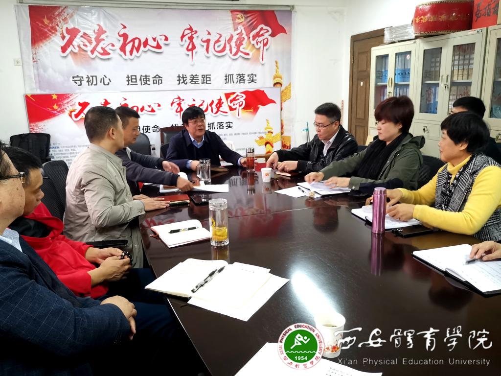 武术学院副院长王怡汇报了学院基本情况与工作规划,党总支书记朱舰从“不忘初心、牢记使命”主题教育开展情况、学生工作、工会分会工作、辅导员工作及存在的问题等五个方面进行了汇报。