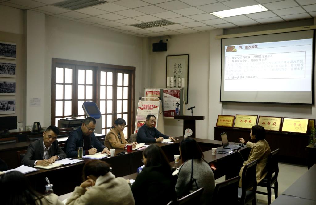 学工部负责人王志刚从学生管理业务的六大问题为切入点,结合“守初心、担使命、找差距、抓落实”的具体要求,汇报了学生工作部的检视问题、整改落实、及下一步整改思路与措施。团委书记熊辉也就“不忘初心、牢记使命”主题教育,开展问题梳理及围绕问题整改落实情况进行汇报。