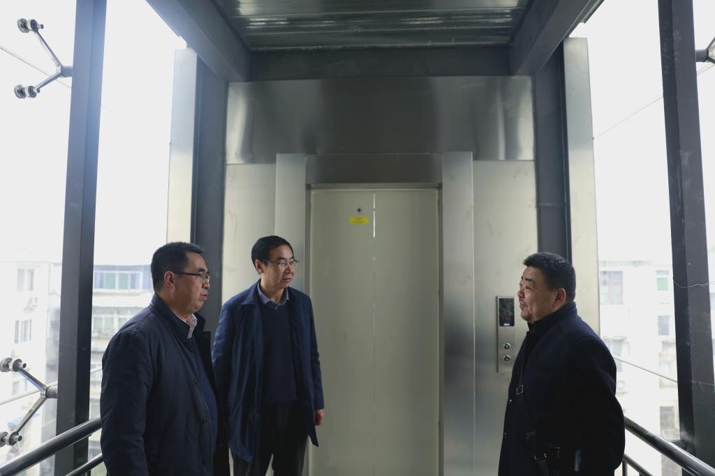 朱元利、李富生检查二期加建电梯情况