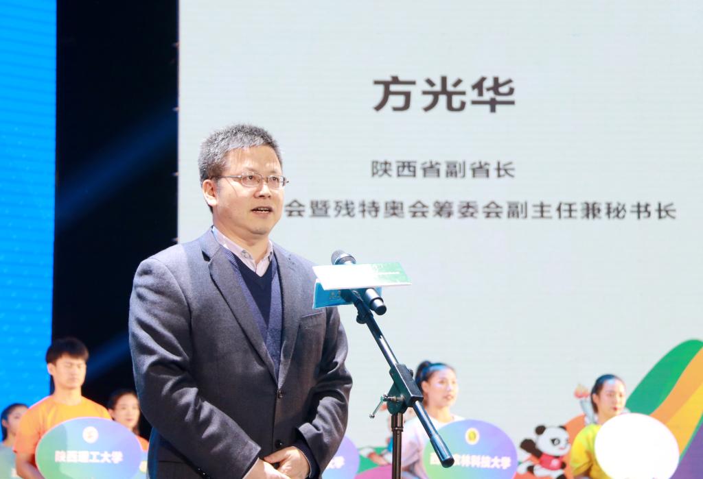 陕西省副省长、十四运会陕西省筹委会副主任兼秘书长方光华出席并宣布开赛,省体育局局长、十四运会暨残特奥会筹委会副秘书长王勇致辞,省政府副秘书长、十四运会暨残特奥会筹委会副秘书长高阳主持了开赛仪式。陕西省教育厅副厅长赵昶葆,共青团陕西省委副书记、十四运会暨残特奥会筹委会志愿服务部驻会副部长鲁镇,万象城党委书记黄道峻、校长朱元利出席。