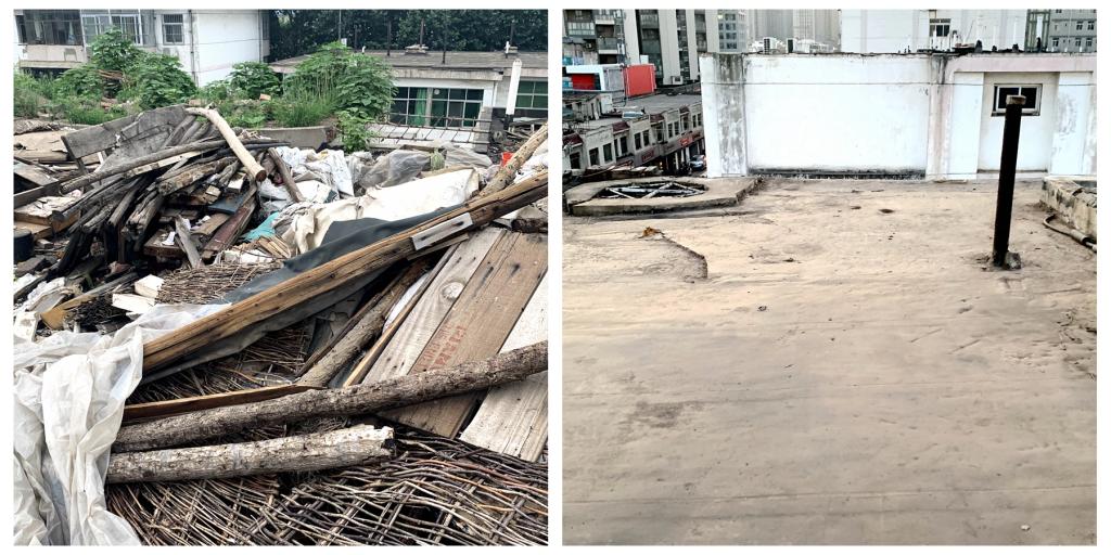 本网讯 近日,在校领导的大力支持与相关部门的共同努力下,万象城对2号家属楼4单元楼顶违章建筑进行了拆除,并完成防水等维护工作。