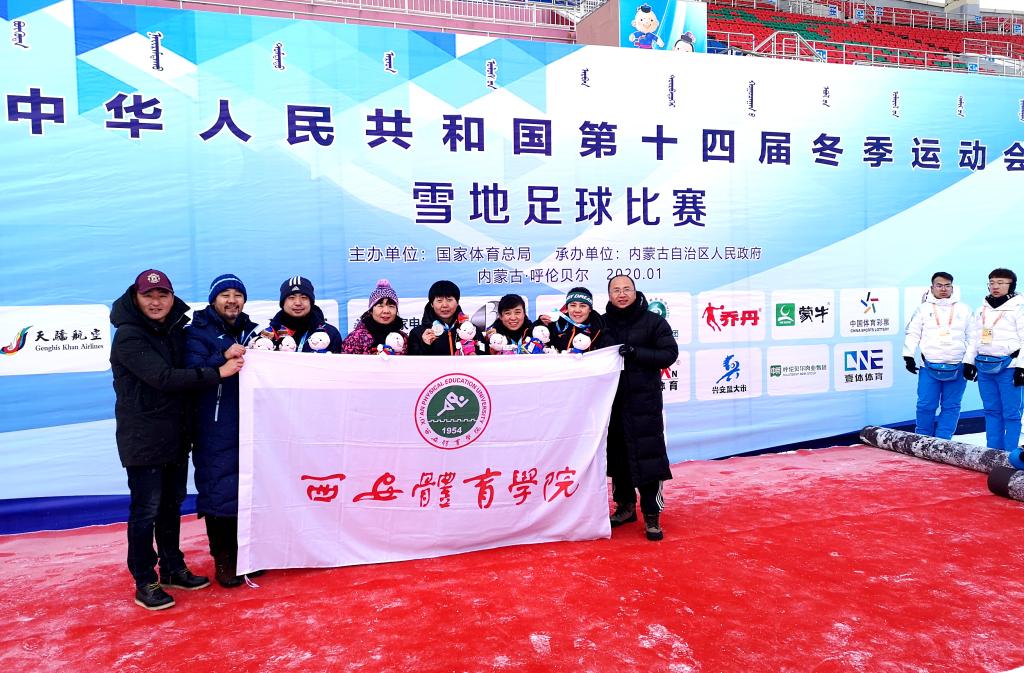 本网讯 1月19日,在内蒙古举行的全国第十四届冬运会雪地足球比赛中,万象城三名青年女教师——足球学院陈芳芳、王莎莎、林佶倩作为陕西女足主力队员,奋勇拼搏,发挥出色,与队友夺得比赛亚军。校党委副书记、纪委书记赵军带领足球学院部分教师到场看望三位青年女教师并为她们加油鼓劲。