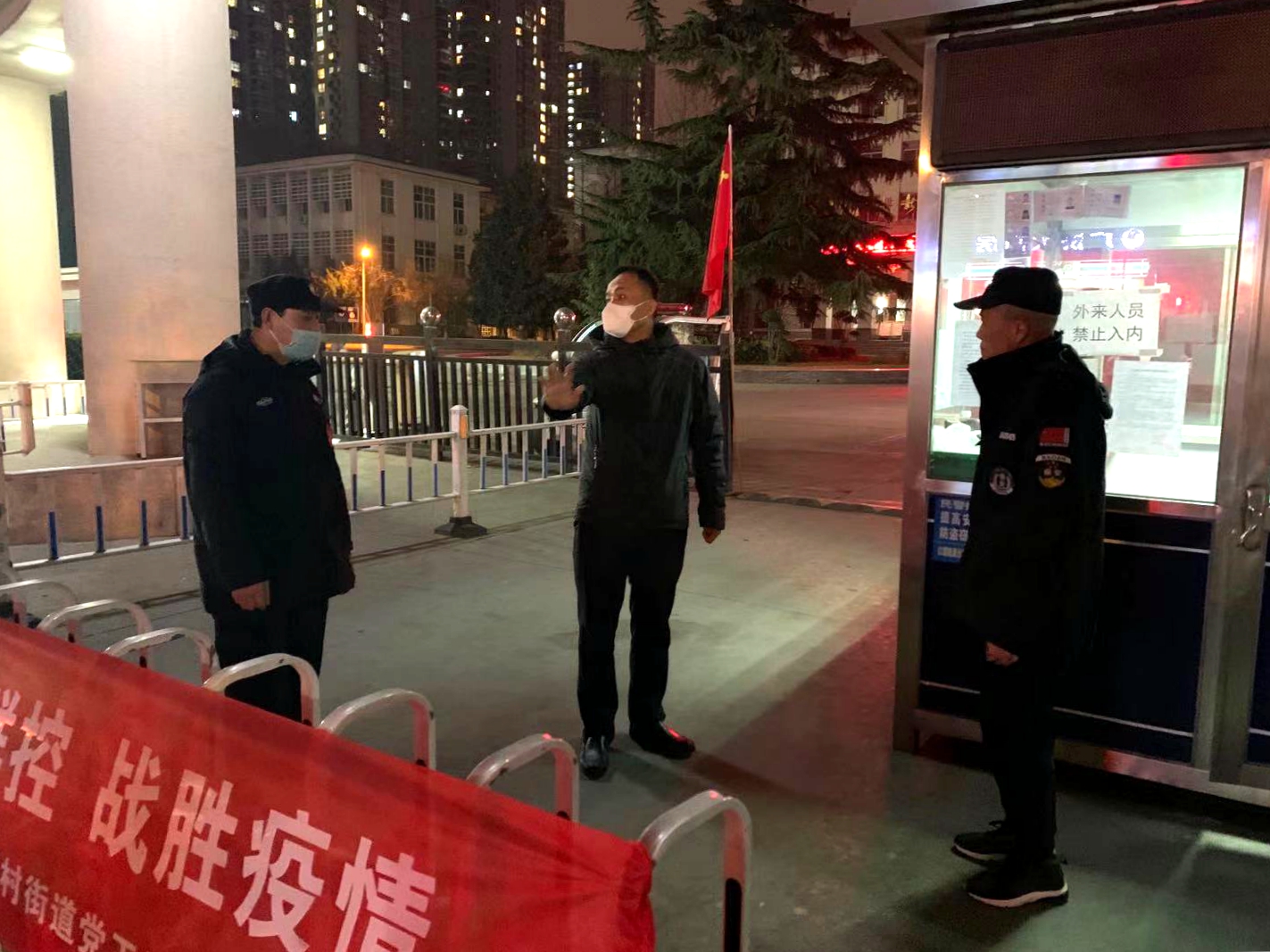 保卫处处长雷振华(中)对夜间门禁工作进行强调