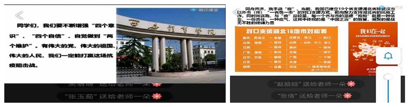 本网讯 2月24日,为贯彻落实好上级单位与校疫情防控工作领导小组的要求,教务处与马克思主义学院提前谋划,做足准备,通过腾讯课堂组织举办了“开学第一课”——思政课战役小课堂活动。