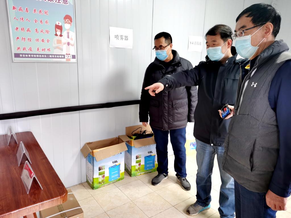 朱元利(中)一行检查新校区防疫工作