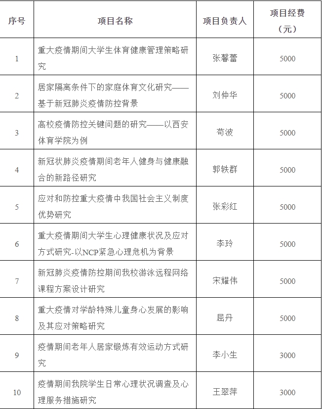 线上线下做好管理服务工作。科研处本着“线上线下同进行、业务保密两不误”的原则开展科研管理与服务工作,加大线上服务和协作,确保科研组织与服务到点到位。目前,已完成《2020年度国家体育总局决策咨询研究项目》申报14项,《国家重点研发计划“十四五”体育领域重大研发需求征集项目》申报3项,《中央支持地方财政项目》申报5项,《国家发改委社会发展司征集社会发展重大政策、形势2020年研究课题》等各类研究项目的线上申报工作。