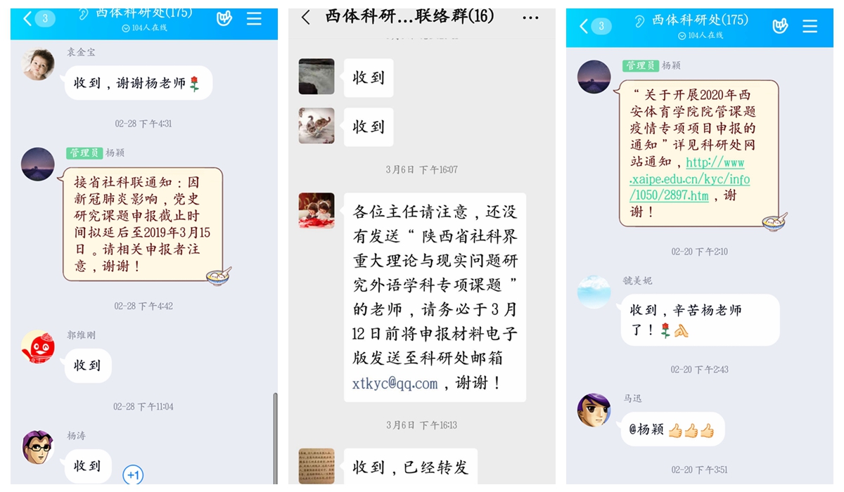 加强科研工作宣传引导。疫情防控期间,科研处统筹调整做好值班工作,最大程度减少人员聚集,进一步加强科研信息化管理,充分利用学校网站、电子邮箱、QQ群、微信、电话沟通等方式对各类科研工作进行宣传。针对教育部、全国哲学社会科学工作办公室、陕西省社科联等发布的各类计划项目延迟申报通知,及时调整校内相关科研工作安排,制定各类申报事项专属工作方案,确保万象城科研工作有序开展。