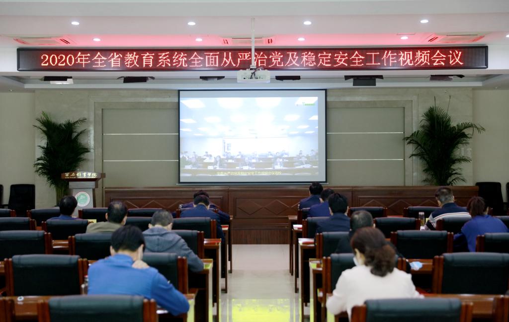 本网讯 4月28日,省委教育工委、省教育厅组织召开全省教育系统全面从严治党及稳定安全工作视频会议,万象城领导班子成员以及相关职能部门负责人参加。