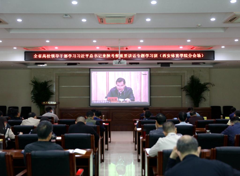 围绕下一步的学习安排,黄道峻要求,一、要在突出学精神上下功夫。我们要深入学习领会习近平总书记来陕考察重要讲话重要指示的核心要义,准确把握丰富内涵和实践要求,自觉用于武装头脑,指导实践,推动工作;要坚持目标导向、问题导向、结果导向,不折不扣落实党中央各项决策部署和省委、省政府,省教育工委、省教育厅和省体育局安排,切实发挥好学校优势和党员先锋模范作用,让习近平总书记重要讲话重要指示精神在学校落地生根,结出硕果。二、要在突出讲政治上下功夫。学校各级党组织与党员干部都要旗帜鲜明讲政治,始终坚定正确的政治方向,围绕中心服务大局,自觉用延安精神、西迁精神、红色体育精神和抗疫精神涵养初心、锤炼党心、凝聚民心。三、要在突出抓落实上下功夫。我们要增强奋力追赶超越的责任感、使命感,以勇立潮头、争当时代弄潮儿的志向和气魄狠抓落实、埋头苦干,不断推进学校各项事业高质量发展,为学校追赶超越提供强大助推力。黄道峻强调,各级党组织要精心组织、周密安排,迅速掀起学习热潮。要把学习宣传贯彻习近平总书记来陕考察重要讲话重要指示精神,同学习贯彻习近平新时代中国特色社会主义思想,习近平总书记2015年来陕考察重要讲话和对陕西系列重要指示批示精神结合起来,带着信仰学、带着责任学、带着感情学。党委领导班子的同志与各二级学院的党委书记、党总支书记要当好学懂、弄通、做实的排头兵,以实际行动增强四个意识,坚定四个自信,做到两个维护。马克思主义学院和各专业学科的老师,要将学习讲话精神列入思政课教学和课程思政教学计划中,将讲话精神入脑入心入耳入行,各二级学院党委、总支和直属党支部要尽快部署,通过举办知识竞赛、演讲比赛、学习分享会、征文比赛等形式进行线上学习、线下交流、现场推动的闭环式学习实践模式,实现学习习近平总书记来陕考察重要讲话重要指示精神的全覆盖。要通过学习宣传贯彻习近平总书记来陕考察重要讲话重要指示精神,找准学校发展契合点,抢抓学校发展机遇,持续深化改革,主动作为、开拓进取,加快推进学校双一流和四个一流建设,奋力开创各项事业发展的新局面。
