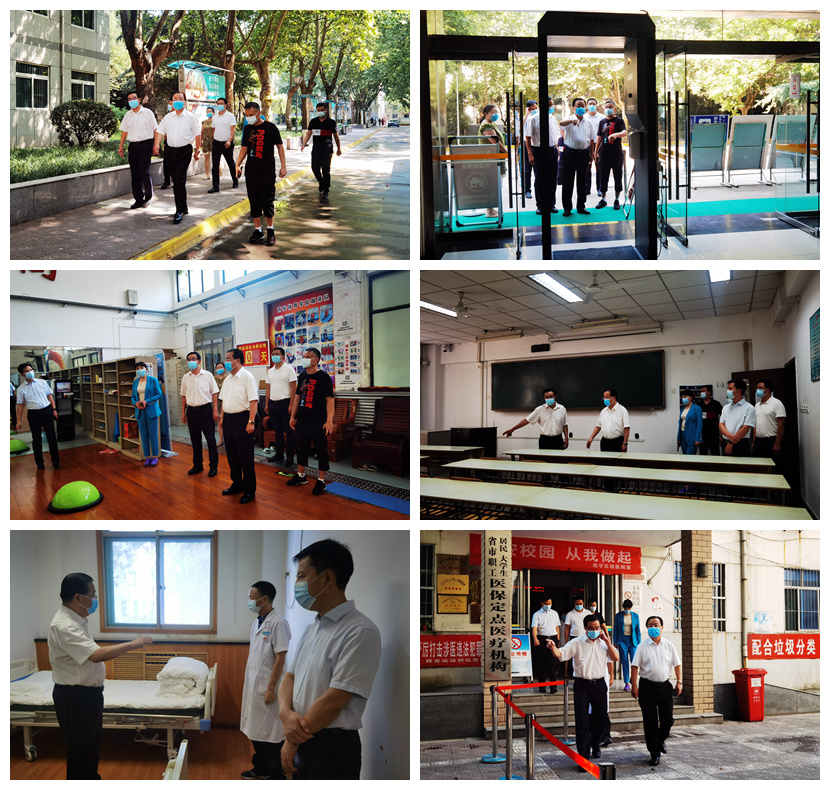 王海波一行还查看了场馆、教室、餐厅、校医院等场所,对万象城开学准备工作和疫情防控部署进行了实地考察。