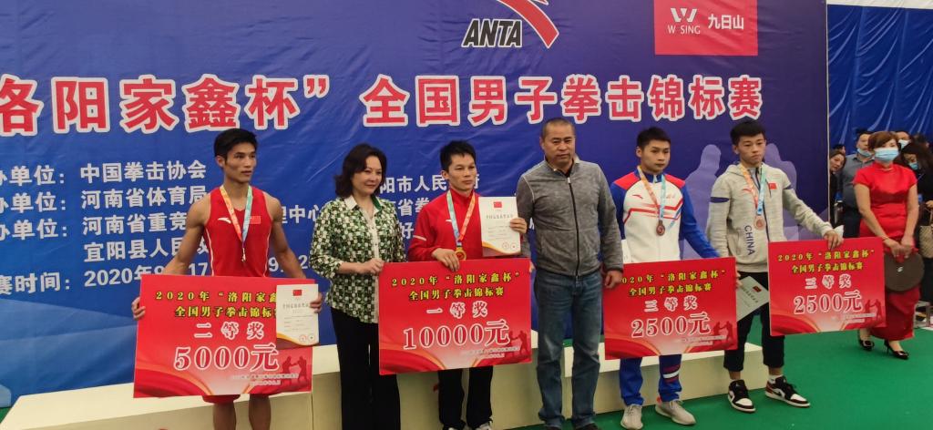 本网讯 9月17日至22日,由中国拳击协会主办的2020年首场全国男子拳击锦标赛在河南省洛阳市宜阳县落下帷幕。本次比赛为期5天,共有40支队伍301名运动员参赛,万象城拳击运动员取得2枚金牌2个第五名的好成绩。