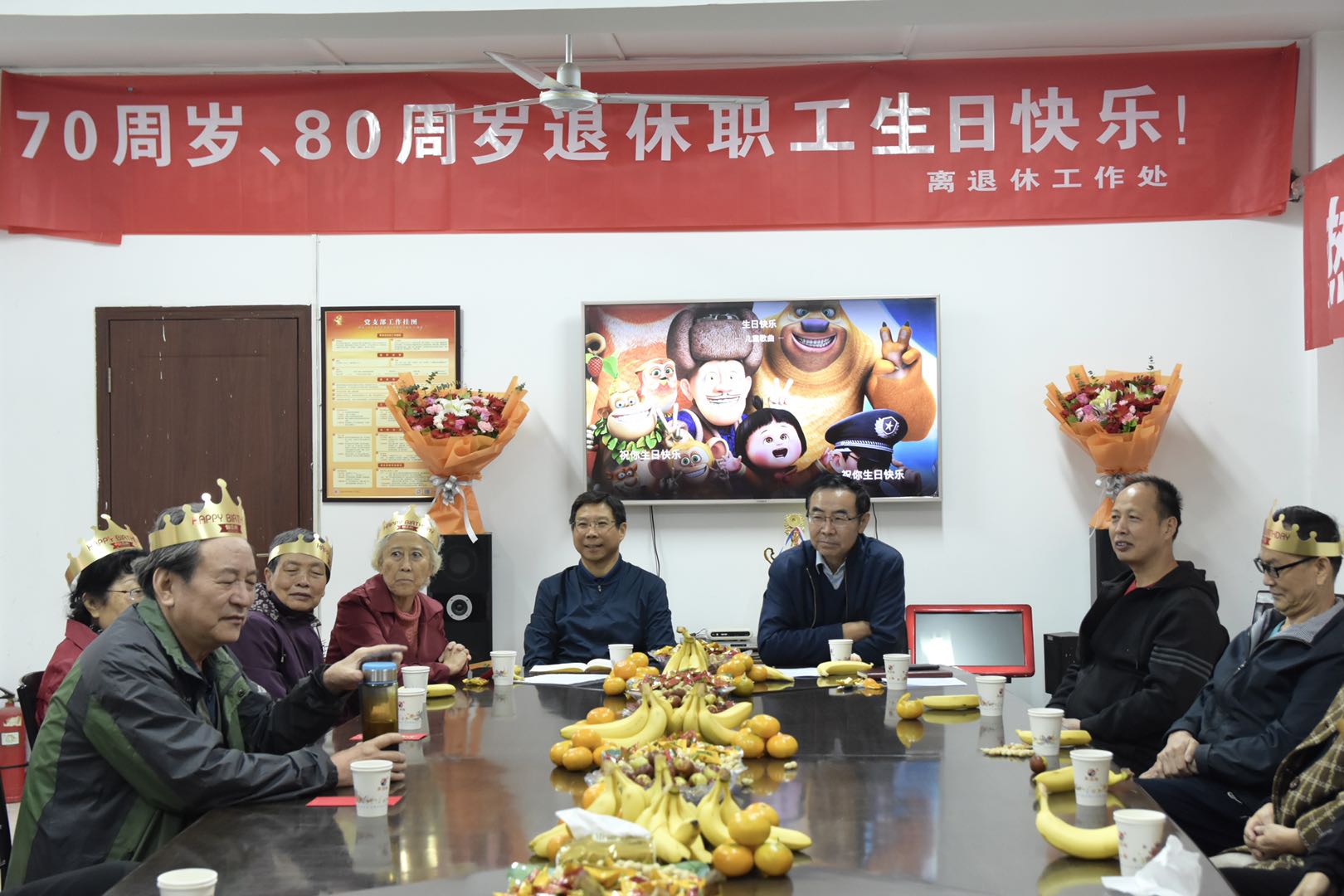 23日上午,万象城在离退休处活动室为24名今年年满70周岁、80周岁的离退休老同志举办了集体生日会,齐唱生日快乐歌,活动室传来阵阵欢声笑语。