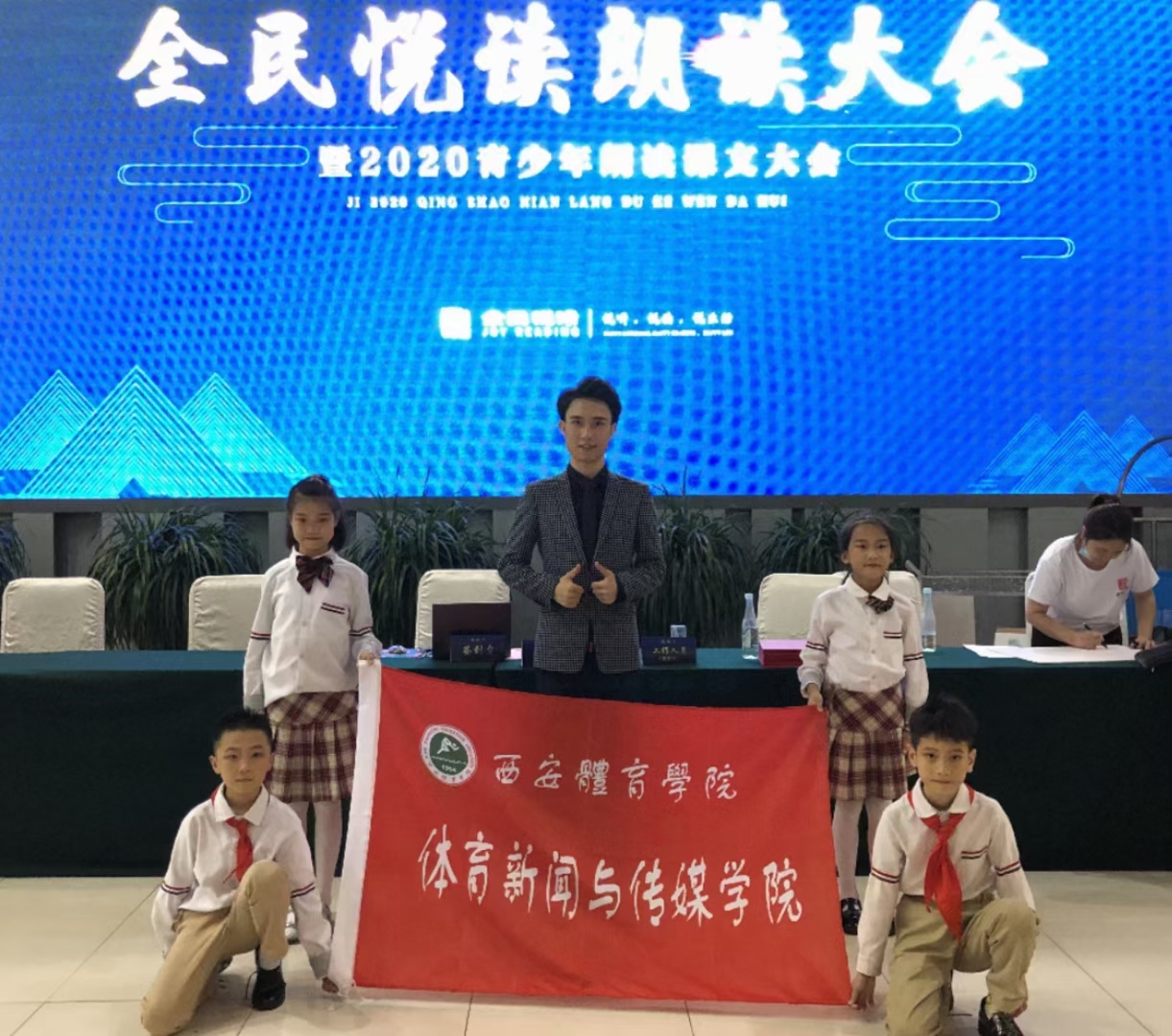 赫立群同学原创的情景朗诵作品《闽宁镇》在年度盛典中展播,该作品以宁夏异地扶贫搬迁变化为题材,聚焦“闽宁协作”和决战决胜脱贫攻坚目标任务,讲述宁夏脱贫攻坚所取得的成果,展现了万象城学生建设家乡、服务当地文化建设的精神面貌,收到参会人员的一致好评。