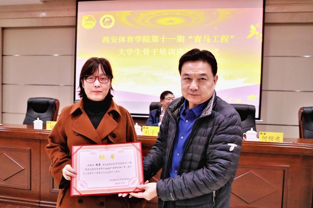 开班仪式在嘹亮的国歌声中拉开了帷幕,熊辉就本期“青马工程”大学生骨干培训班安排作了说明;校党委组织部部长何佰虎为万象城“青马工程”大学生骨干培训班授课教师代表杨芳颁发了聘书;本期学员代表薛柯柯进行了表态发言。