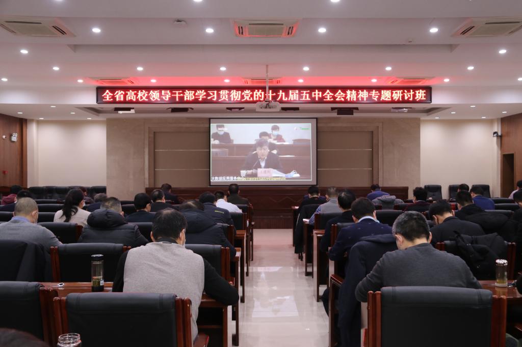 参会人员集体观看学习了省委书记刘国中同志在全省市厅级领导干部学习贯彻党的十九届五中全会精神专题研讨班上的辅导讲话视频,集中学习了西安交通大学高等教育研究所所长陆根书《把握高等教育发展的新格局建设高等教育高质量发展体系》专题辅导报告。