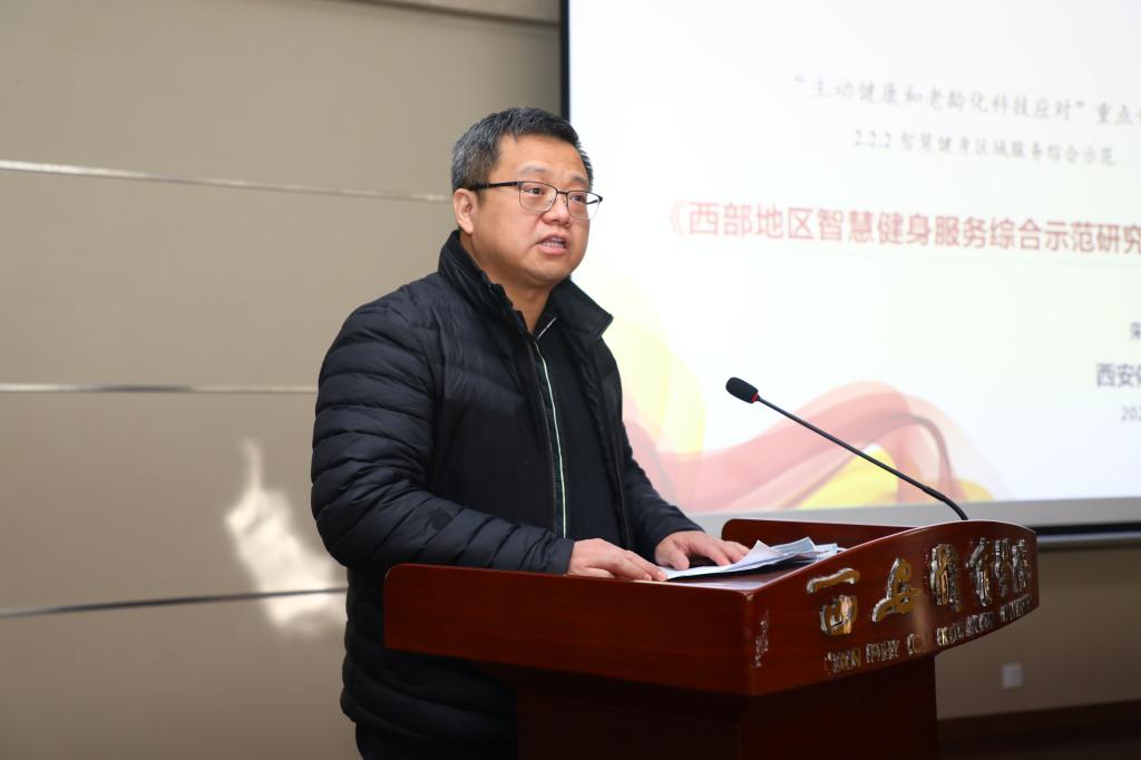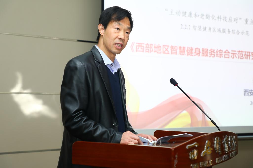 万象城朱元利教授作为项目负责人从项目背景、项目意义、研究总体思路、技术架构、研发团队、任务分解等方面介绍了项目的基本情况。他谈到,该项目紧紧围绕《“健康中国 2030”规划纲要》 和“互联网+”国家战略主题,抓住陕西省承办十四运会和残特奥会重要契机,依托场馆信息化和场馆基础设施等建设成果,研究并系统集成西部地区智慧健身服务综合平台,实现现代信息技术手段与全民健身的创新融合,与国家全民健身信息服务平台对接,凸显西部特色、助力全民健康,探索主动健康的中国方案,实现“科技赋能群众体育”的目标。该项目的实施一方面将加强场馆开放服务与信息监管、提高场馆与体育设施的利用率,解决好老百姓“在哪健身”的问题;另一方面将结合人民群众的不同需求,提供个性化健身指导服务,解决不同人群 “如何科学健身”的问题。项目旨在建成西部地区智慧健身服务综合平台,进一步完善西部地区全民健身公共服务体系;应对“我国步入老龄化社会,总卫生支出费用逐年递增”的困境,逐步改变“生活方式疾病致死率逐渐上升”的趋势,助力“健康中国,全民健康”目标的实现,全面提升地方政府服务全民健身的综合能力。