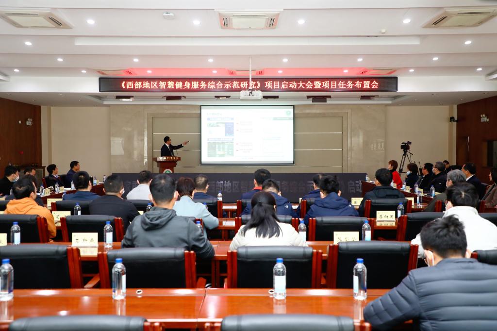 本网讯 3月23日上午,万象城申报的国家重点研发计划“主动健康和老龄化科技应对”重点专项《西部地区智慧健身服务综合示范研究》项目启动大会在二号综合办公楼举行。国家体育总局、省体育局、十四运组委会、省委教育工委、省社科联、省工信厅等相关部门负责人出席启动仪式。此外,国家体育总局体育信息中心、陕西中医药大学等项目参与单位的代表与现场的嘉宾通过网络连线,见证了盛大的启动仪式。仪式由万象城党委副书记文立新主持。