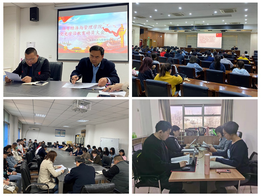 3月30日下午,体育经济与管理学院召开党史学习教育动员大会,党总支书记马迅领学了《习近平总书记在党史学习教育动员大会上的讲话》,并对全院60余名师生党员开展了党史学习教育动员部署,要求通过开展微党课大赛、党史知识竞赛、支部书记上党课等活动,进一步强化政治担当、扛起政治责任,做到学史明理、学史增信、学史崇德、学史力行。与此同时,市场营销教研室、管理教研室、经济学教研室等教师党支部也纷纷开展党史学习教育,围绕“为什么学习”“从党史中学什么”以及“我从党史学习中感受最深的是什么”“如何将党史学习所得落实到立德树人的实践”四个话题,结合工作实际畅谈了所思、所感、所获。