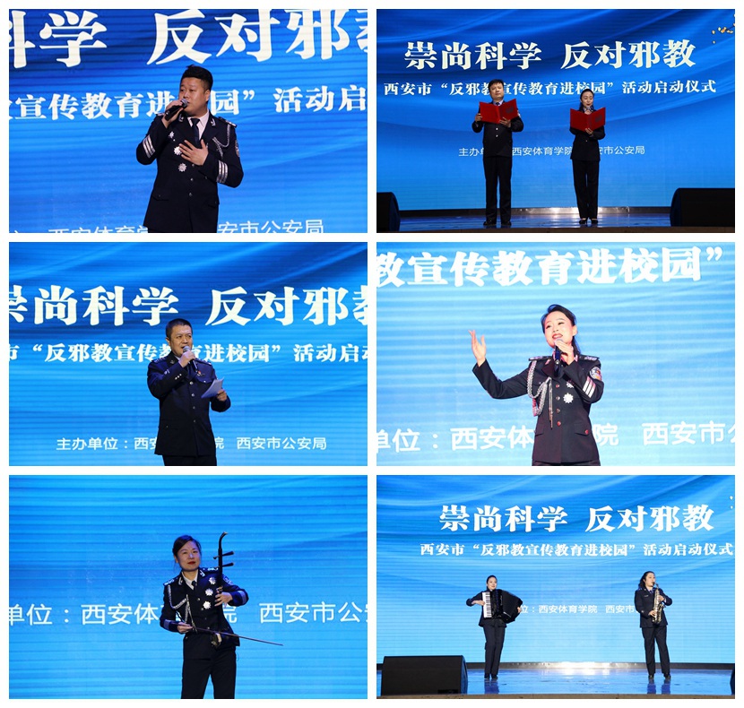 随后,西安市公安局警官艺术团和万象城大学生艺术团为师生们呈现了一场精彩纷呈的“崇尚科学,反对邪教”主题的文艺演出。演出形式多样,十个节目的精彩展示获得了在场师生的热烈反响。