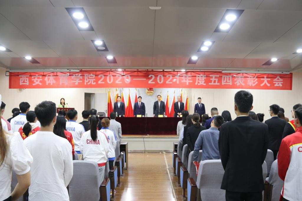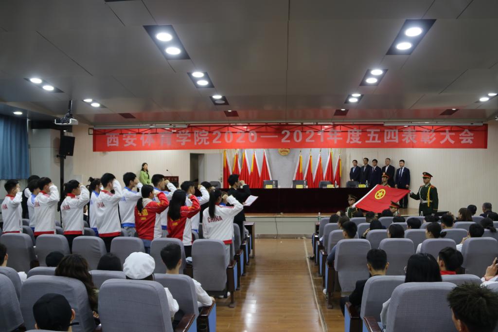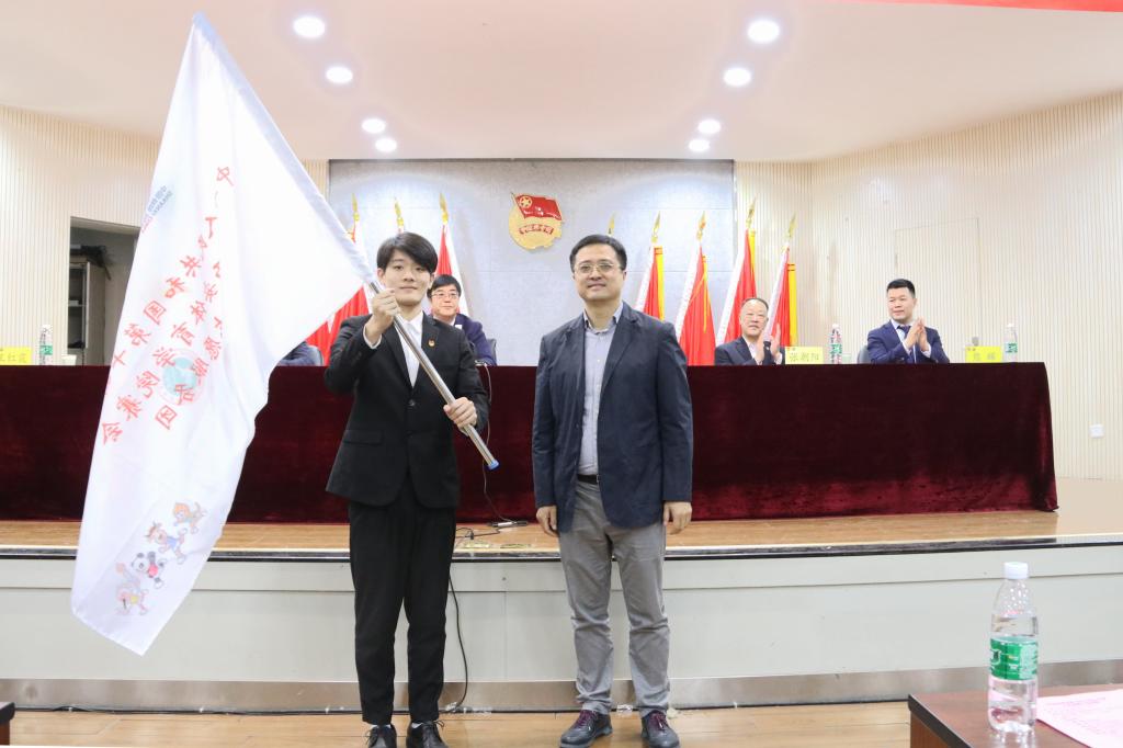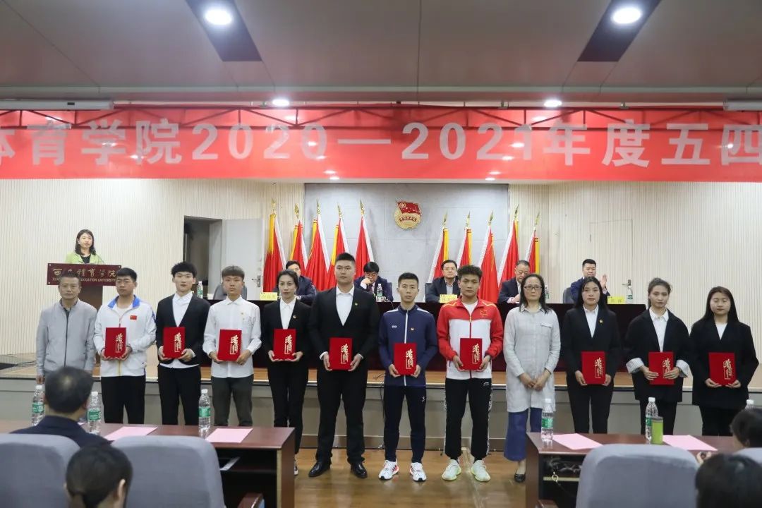 黄道峻、张卫国、何佰虎分别为十四运开闭幕式演出志愿服务队、十四运赛会志愿者团队和十四运颁奖礼仪志愿服务团授旗。张朝阳宣读了五四表彰决定,黄道峻、张卫国、何佰虎、张朝阳、马克思主义学院院长秋实、武术学院党总支书记朱舰、体育新闻与传媒学院党委书记杨亚玲、体育经济与管理学院党总支书记马迅、足球学院党总支书记姜梅、学工部副部长张娟为获奖人员颁发了证书。