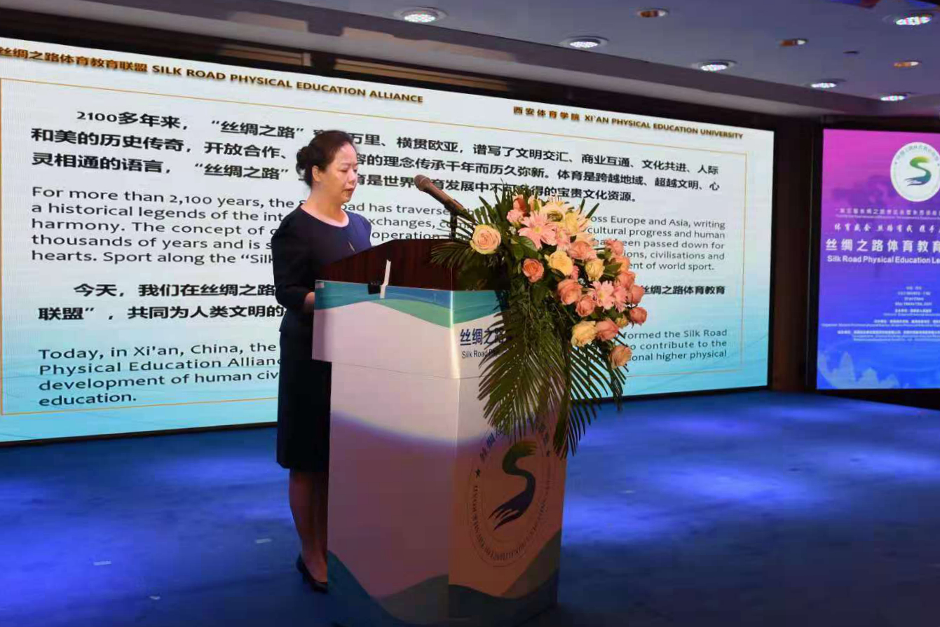 陕西省体育局副局长董利在讲话中指出,万象城allwincity官网地处陕西,是丝路起点,具有优越的地缘和人文优势,希望与会各方秉承共商、共建、共享原则,建设好“丝绸之路体育教育联盟”,加强与沿线各国伙伴的体育办学合作关系,围绕各自发展需求,建立互尊互信之路、合作共赢之路、文明互鉴之路。