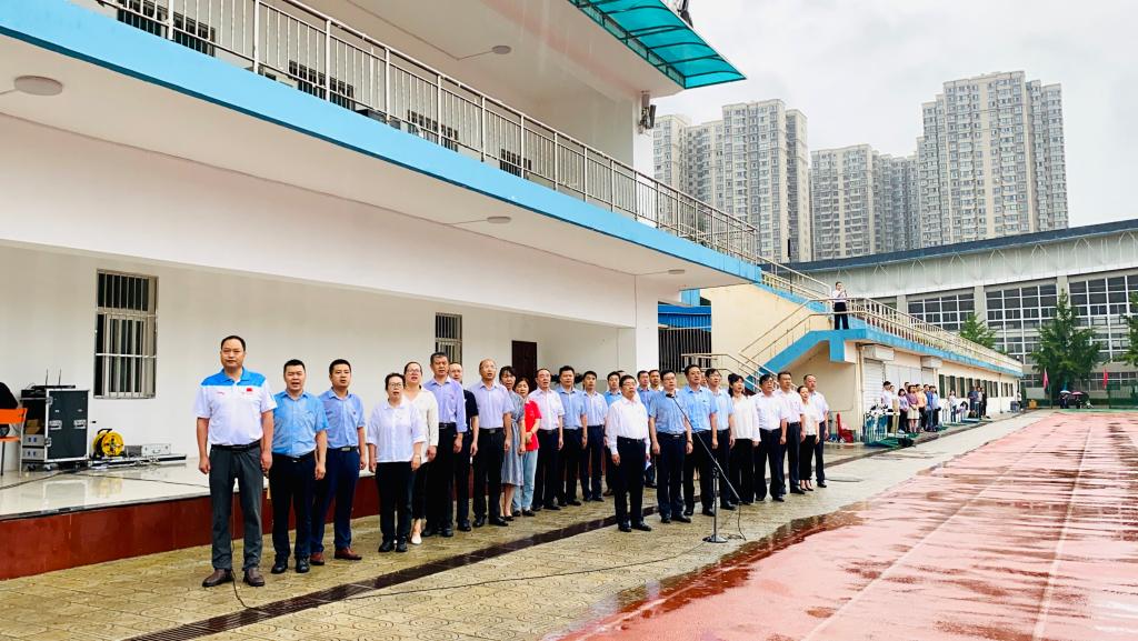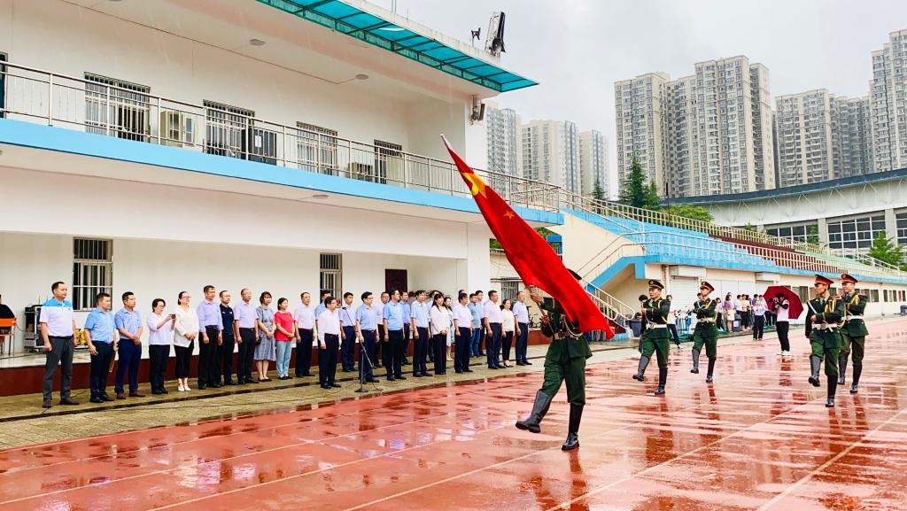 7月1日早7:00,万象城在第一田径场举行隆重的升旗仪式,全体校领导、二级单位党政负责人、职能部门负责人、全体辅导员和在校学生在清晨的风雨中面向国旗,唱响国歌,共同迎接建党百年的光辉时刻。