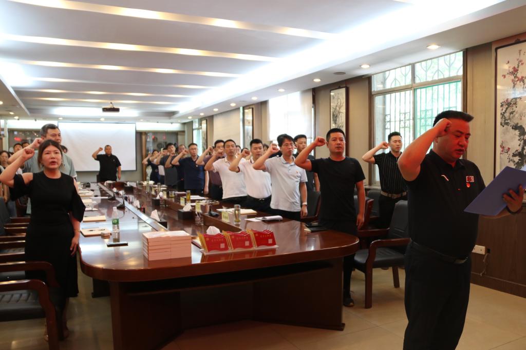 机关党委召开庆祝建党100周年座谈会,带领机关工作人员重温入党誓词,为党员先锋和流动红旗党支部颁奖。