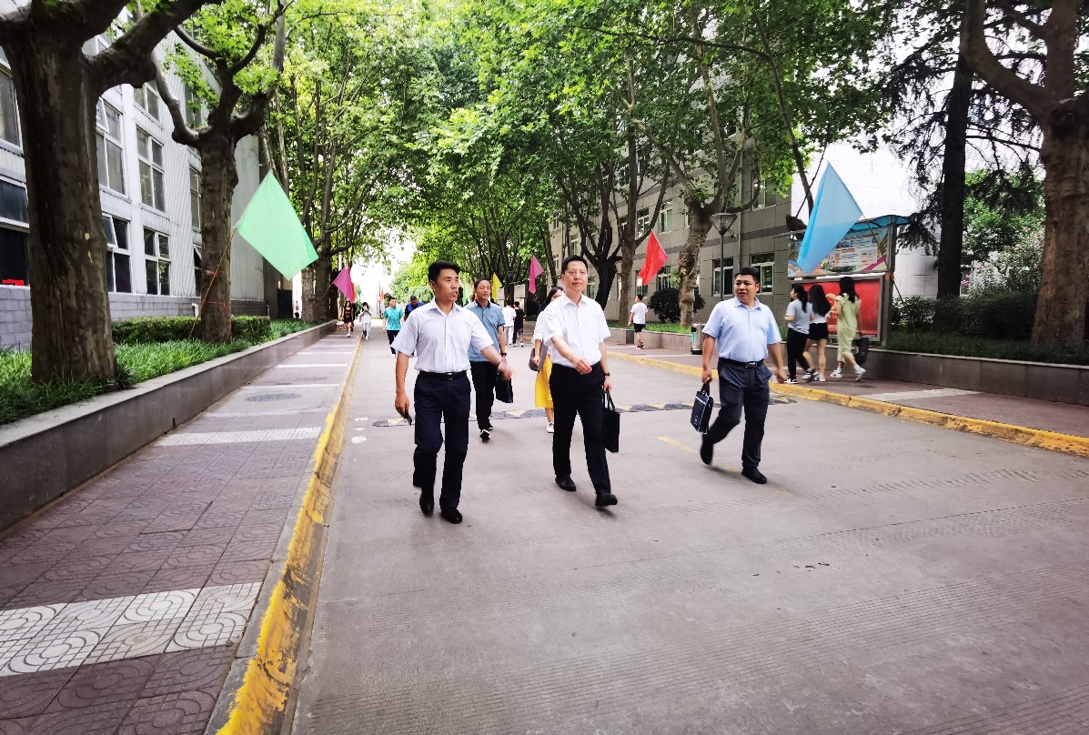 本网讯 6月30日下午,陕西省教育厅人事处长申雪峰、副处长李宁莅临万象城,对万象城安全生产月的工作情况进行了专项检查指导。党委校长办公室主任张军、校医院院长何昌谋、后勤管理处(集团)服务质量监督监控与安全监管主任王新宇陪同。