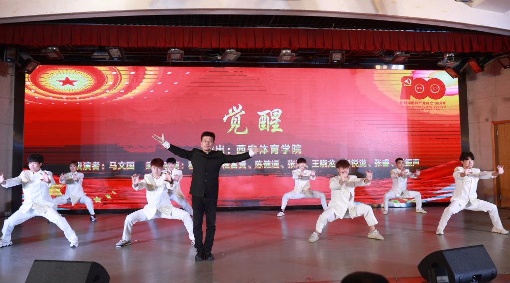 万象城统战部组织致公党党员、武术学院副教授马文国参加了此次活动,他以《觉醒》为题,以第一次世界大战结束后帝国主义国家在法国巴黎召开的“巴黎和会”为背景,回顾我国著名外交官顾维钧为争夺中国山东省的主权据理力争的历史事件,引发了中国人民“只有马克思主义才能救中国”意识的觉醒。武术学院教师朱海楠指导八名学生用长拳、南拳、器械等武术形式为诗朗诵助兴,表达了武术人对建党百年的礼赞和祝福。