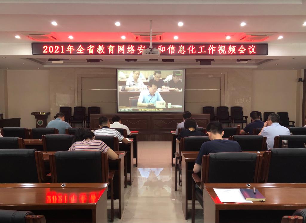 本网讯 7月12日,省委教育工委、省教育厅组织召开全省教育网络安全和信息化工作视频会议,省委教育工委书记王建利出席并讲话。万象城设立分会场,党委书记黄道峻、校长刘子实、党委副书记文立新、副校长陈彦以及学校网络安全和信息化工作领导小组全体成员参加视频会议。网络管理中心全体工作人员列席会议。