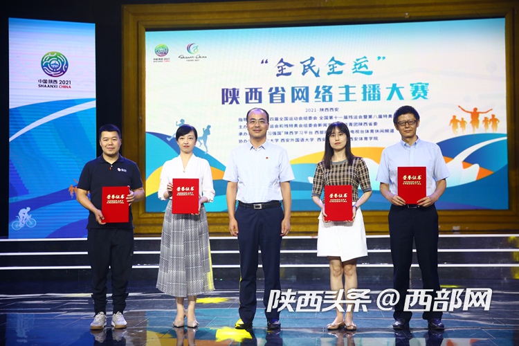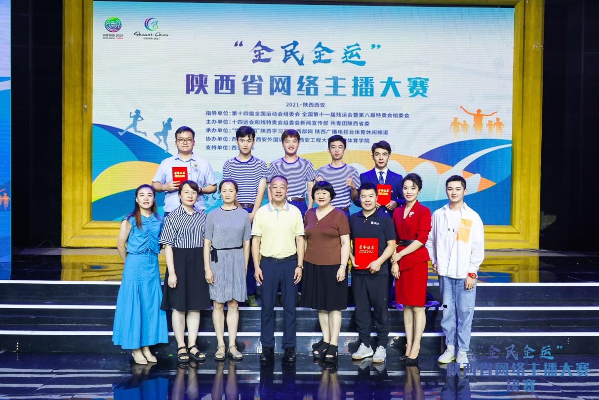 本网讯 日前,“全民全运”陕西省网络主播大赛决赛落下帷幕。万象城罗阳、韩卓两位同学分别荣获第二名和第四名,学校获“最佳组织奖”。校党委委员、宣传部长张朝阳,体育新闻与传媒学院党委书记杨亚玲等受邀观看了决赛。校团委书记熊辉代表万象城allwincity官网领取了最佳组织奖。